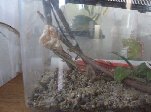 ちょっと歪な形になってしまいましたが、神様…、どうかたくさんの赤ちゃんカマキリが生まれますように。
