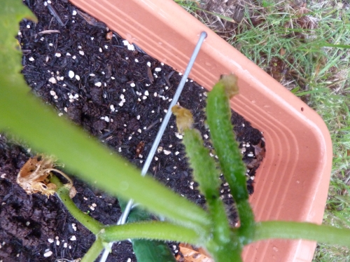 きゅうりの夏すずみ君だって、落ちちゃった実の上の方には、新しい実を付けてました。