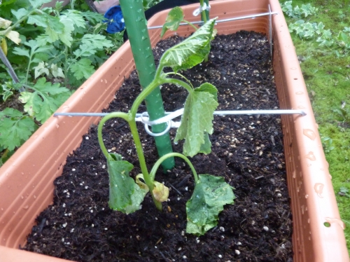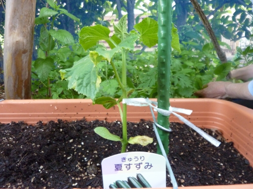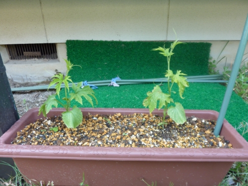 キュウリの北進君は未だ予断を許さぬ状態が続いておりますが、夏すずみ君からの忌避物質分泌説も却下され、元のプランターで夏すずみ君と一緒に療養することが決定したため、実家から貰って来た療養用集中治療室プランターが一つ空きました。