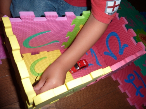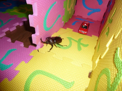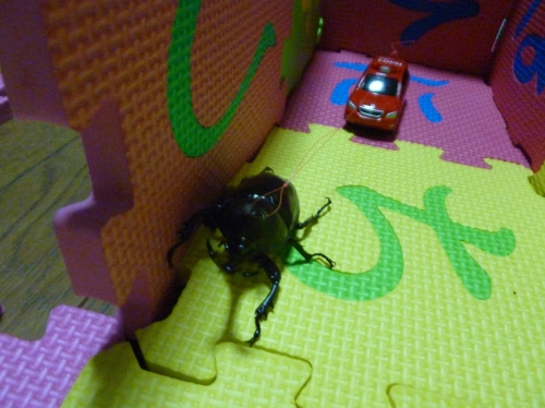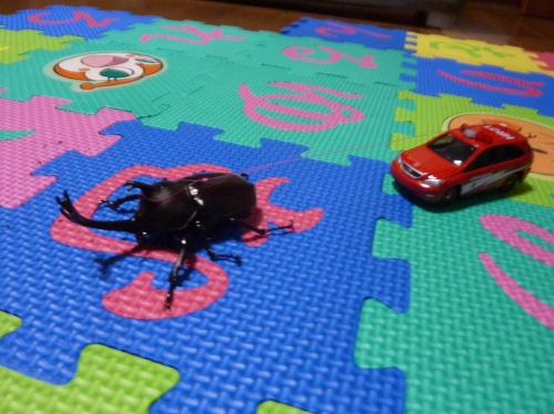 正解は、「カブトムシにハイパー・レスキュー1号・機動巡回車を引っ張らせる。」でした。