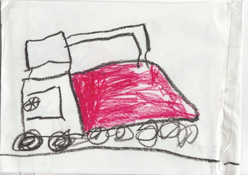 右下の緑色のところは木を描いてたんでしょうけど、車もついでに…と言ったところでしょうか。