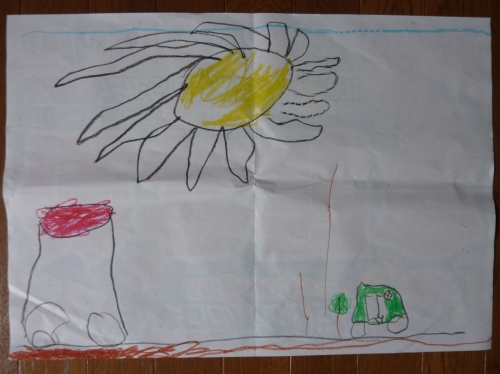 こーゆーレベルってゆーのは、右肩上がりの直線状に上達して行くのではなくって、階段状にステップアップして行くんだというようなことを、どこかで読んだような気がしますが、息子の場合は、まさにこの2カ月の間に、その画才の大きな段差があったかのようです。