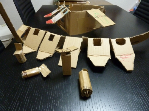 こんなダンボールの偽者で遊んでもらえるとは思わなかったのですが、出来上がった時は予想以上に満足してくれたのです。