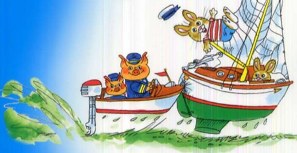この絵本の表紙の中央はモーターボートがヨットに突っ込んでいる絵です。