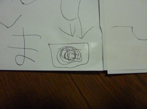 くしゃくしゃってしてあるのは、間違ったからではなく、探してね、の意です。